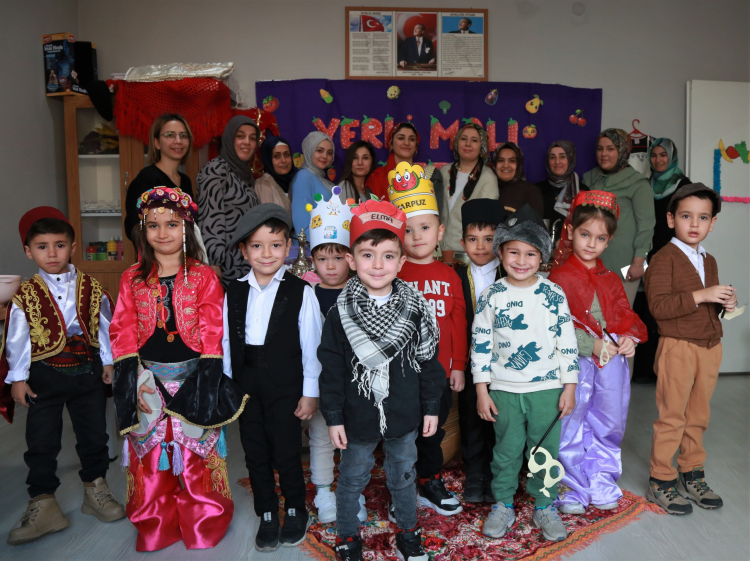 Yunus Emre Kültür Merkezi Çocuk Eğitim Merkezi’nde düzenlenen programda, veliler tarafından hazırlanan yerli ve geleneksel yiyecekler öğretmenlerin rehberliğinde çocuklarla buluşturuldu. Etkinlik boyunca yerli gıda tüketimi ve yerli üretimin önemi vurgulanırken, çocukların milli bilinç kazanmaları ve kültürel değerlerle tanışmaları için çeşitli bilgiler aktarıldı.