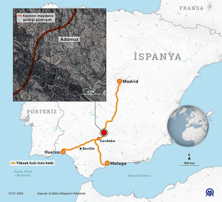 İspanya demiryolu ulaşım şirketi Renfe, kaza nedeniyle Endülüs istikametinde 200’den fazla seferin iptal edildiğini duyurdu.